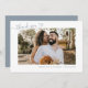 Dusty Blue Boho Simple Photo Heart Script Wedding Thank You Card