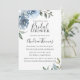 Watercolor flowers in chic dusty blue with botanical branches, bridal shower invitation. Customise text, font style, colour and size.