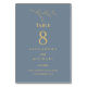 Add a touch of timeless grace to your reception with this personalised, minimalist Christian wedding table number card. This elegant design features a delicate line drawing of a botanical olive branch with olives and leaves — a symbol of peace and enduring love. Set against a stylish dusty blue background, the design blends simplicity with sophistication through refined calligraphy script and clean typography fonts. A treasured Bible verse is thoughtfully included to reflect your faith and create a meaningful ambiance for your special day. Perfect for couples seeking a serene, Christ-centred celebration, this table number card pairs beautifully with a minimalist and botanical wedding theme.