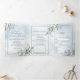 Dusty Blue Botanical Greenery Watercolor Script Tri-Fold Invitation
