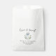 Watercolor meadow flower in dusty blue with botanical branches, personalised wedding favour bags. Designed to match our Dusty Blue Botanical Collection.