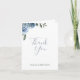 Chic watercolor dusty blue flowers with botanical branches, wedding thank you card.