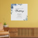 Elegant watercolor dusty blue botanical, wedding welcome poster. Modern chic typography design style.