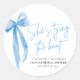 Dusty Blue Bow She's Tying the Knot Bridal Shower Classic Round Sticker