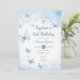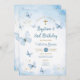 Dusty Blue Butterfly Girl 3rd Birthday Baptism Invitation