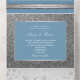 Modern, typography, simple glitter silver and blue all-in-one wedding invitation with snowflakes and custom picture of the couple at the back.