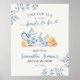 Dusty Blue Chinoiserie Bridal Shower Tea Party Welcome Sign,
