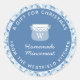 Homemade Food Gift Label From the (Family Name) Kitchen... Dusty Blue Classic Round Sticker Food or Jar Lid Label... A distinctive dusty blue and pastel blue watercolor check pattern borders your homemade food product text on these round sticker labels for gifting your homemade jams, preserves, and relishes. In the centre of the label is a pastel blue jam jar graphic with an overlaid monogram initial above the recipe example text "Homemade Mincemeat". Example off-white text reads "A Gift for Christmas" and "From the Westfield Kitchen" all circling the example product name and jam jar illustration. You can revise all text to suit your own needs on the handy personalisation template.