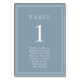 These beautiful dusty blue table numbers also include a seating chart to make it simple for your guests to find their table easily. Our design features a dusty blue background colour with white, elegant outline and font for your table number and guests names. Beautiful, elegant and fully customisable, these table number cards will be the perfect addition to your wedding table decor. **PLEASE NOTE: To order, simply adjust your table number and add each number to your cart separately. Then check out once you are finished.