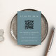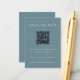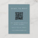 This minimalist RSVP enclosure card from the Low Tide collection by Navy Road Creative features a modern dusty blue background with clean white text and a scannable QR code for easy online responses. A perfect match for coastal or destination wedding suites with a sleek, contemporary vibe.