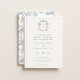 Dusty Blue Monogram Crest, wedding invitation. Vintage inspired Regency-Era baroque line art monogram crest. Features, an elegant dusty blue typography design style mix of script and bold type. Chinoiserie style garden pattern backing.