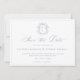 Dusty Blue Crest Monogram Wedding QR Code Save The Date