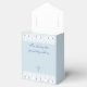 Personalize this Christian baptism favor box to create a thoughtful keepsake for your little one’s special, faith-filled day. This design features a cross in elegant soft blue pearl graphics and delicate white lace and pearl graphic details against a dusty blue background, perfectly blending a minimalist and vintage look. Ideal for christening, simple baby dedication, or baptism celebrations, the design combines timeless typography with a graceful script font. These favor boxes make charming party favors and a heartfelt way to say thank you to your guests. See the collection for matching items to complete your coordinated celebration.