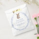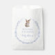 Adorable baby boy shower favour candy bags featuring cute charming blue bunny rabbit with the bow and light blue wildflower whreath.