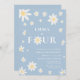 Dusty Blue Daisy Fourth 4th Four Birthday Invitation