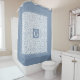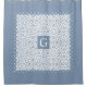 Dusty blue damask, scalloped borders and monogram shower curtain