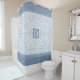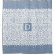 White and dusty blue damask pattern with blue scalloped borders and monogram shower curtain. On the upper and the bottom parts of the curtain there are dusty blue bands with scalloped edges while in the centre there is your monogram. You can personalise it with your name.