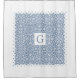 White and dusty blue damask pattern with monogram and white scalloped borders shower curtain. There are white bands with scalloped edges around it while in the centre there is your monogram in a white frame. You can personalise it with your name.