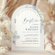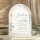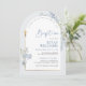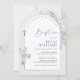 Dusty Blue Delphinium Floral Arched Boy Baptism Invitation