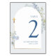 Dusty Blue Delphinium Floral Arched Boy Baptism Table Number