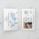 Modern and Elegant World Map Invitation Wedding Destination, like passport. Dusty blue watercolor world map and compass monogram crest on the front page