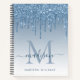 Dusty Blue Drips Glitter Sparkle Monogram Script Notebook