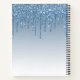 Modern Girly Glam Light Baby Sky Dusty Blue Drips Glitter Sparkle Monogram Script Name Notebook