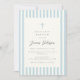 Luxurious and elegant baptism invitation for boys that features blue & white stripes and a simple blue cross on an ivory background. For a premium textured look choose the paper type "Laid".