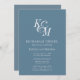 Dusty Blue Elegant Classic Monogram Wedding Rehearsal Dinner Invitation Card. Celebrate your special day with this elegant and beautiful wedding invitation card to beautify your special occasion. All the texts are pre-arranged for you to personalise easily and quickly with your own details.