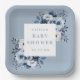 Dusty Blue Elegant Country Floral Baby Shower Paper Plate