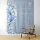 This elegant dusty blue transparent floral baptism christening photo backdrop can be personalised with your information in chic typography. Designed by Thisisnotme©