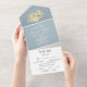 Dusty Blue, elegant, rustic, modern folded marriage, Wedding all in one invitations. Trifold, budget set. You can personalised it with your own details.