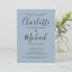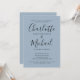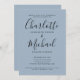 Featuring signature style names, this elegant, modern simple engagement party invitation can be personalised with your information in chic lettering on a dusty blue background. Designed by Thisisnotme©
