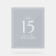 The clean, crisp design allows the natural beauty of your venue to shine through, while the subtle Dusty Blue typography adds a touch of refinement. Perfectly suited for modern and classic weddings alike, this table number sign ensures that every detail of your special day is harmoniously aligned with your vision of elegance.