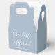 Elegant wedding favor box featuring chic signature script names and special date on a dusty blue background. You can personalize with your own thank you message on the reverse. A perfect way to say thank you to your guests! Designed by Thisisnotme©