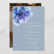 Dusty Blue Elegant Watercolor Floral Photo Wedding Invitation