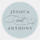 Dusty Blue Elegant Wedding with Couple's Names Classic Round Sticker