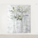 Create the perfect photos for your modern bohemian botanical wedding, with this gorgeous light dusty blue eucalyptus greenery botanical watercolor backdrop tapestry, featuring a faux Carrera marble background, watercolor splash, and trendy hand lettered script typography. Part of a wedding invitation suite. Copyright Elegant Invites, all rights reserved.