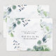 Design features a printed coloured with leaves element in shades of dusty blue and green over greenery leaves and eucalyptus . Great for your wedding celebrations!