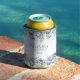 Very elegant can coolers for a birthday party. Two borders of dusty blue peonies and roses surround 3 lines of editable text.