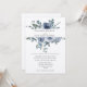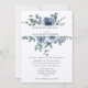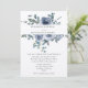 A beautiful dusty blue watercolor floral wedding invitation with grey text from bride and groom with parents.