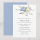 Soft watercolor florals in dusty blue and butter yellow cream on a white background with a dusty blue backing.