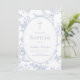 Celebrate a special moment of faith with this elegant blue floral baptism invitation. Featuring a floral pattern, oval frame, and a cross at the top, this design offers a timeless and classic look perfect for a meaningful baptism ceremony. Whether you're planning a traditional church service or an intimate gathering, this invitation adds a graceful touch to your event.