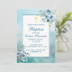 Dusty Blue Floral Boy Baptism Religious Invitation