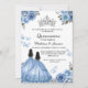 Celebrate the enchantment of your Quinceañera with our exquisite Dusty Blue Floral Invitation adorned with delicate butterflies and a regal crown motif.dusty blue background sets the perfect tone for the occasion,