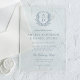 Dusty Blue Floral Crest Monogram Wedding Elegant Acrylic Invitations