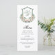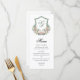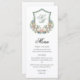 This elegant dusty blue floral crest menu is perfect for your wedding reception. It features a green crest of blue larkspur, blush pink and white roses, lilies of the valley and wispy greenery with the bride and groom's initials. It is as unique as you are as a couple and will look stunning at very place at your reception. This menu with 2 entrée options can be easily changed to reflect the menu you have carefully chosen for your guests. To create your unique menu select Personalise this template and type in your menu selections. It's very easy to do and will only take a minute or two for you to see your beautiful menus.