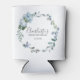 Very elegant can coolers for a 90th birthday party. A floral wreath features dusty blue peony and rose flowers nestled in blue eucalyptus leaves. The woman's name is written in a trendy script font. 90th Birthday and date follow. This 90th Birthday can cooler is part of the 90th Birthday Dusty Blue Floral Budget collection. You'll find many templates to create personalised party supplies and invitations.