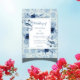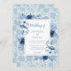 Featuring a full patterned background of watercolor blue and navy flowers, this design offers a modern yet timeless look. Perfect for spring weddings, garden parties, or classic romantic ceremonies.
