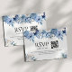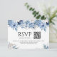 Dusty Blue Floral Flowers Garden Wedding QR Code RSVP Card
